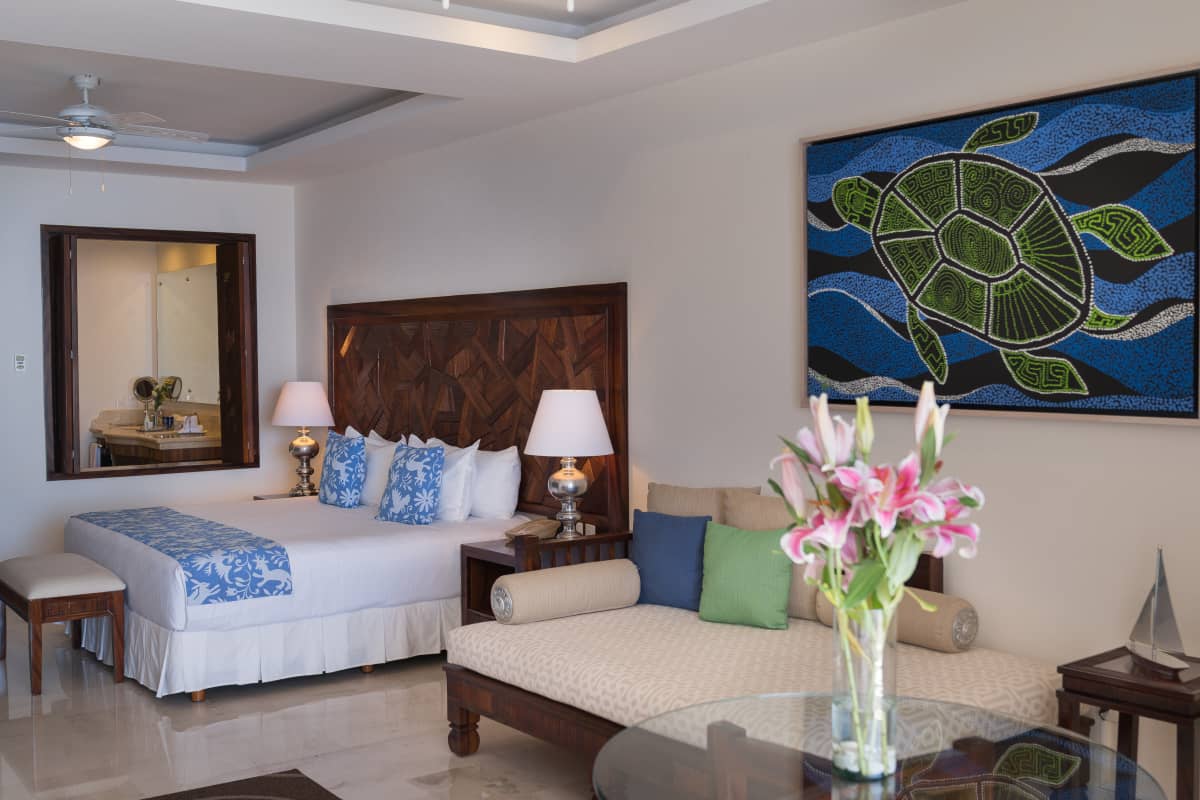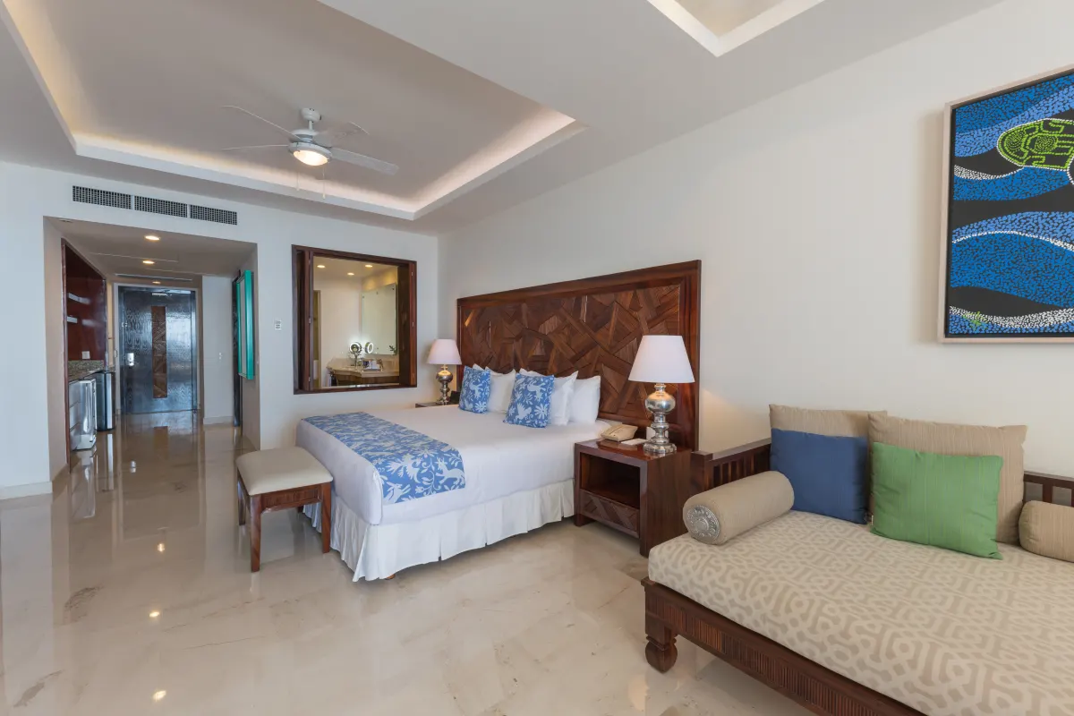 Our beautiful Grand Corner Suite combines spaces designed exclusively for your comfort, featuring a terrace with a privileged view of the sea and an extra queen bed chaise lounge.